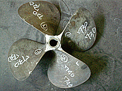 ドライブ用のプロペラをはじめとし、小型船のプロペラを職人の技で